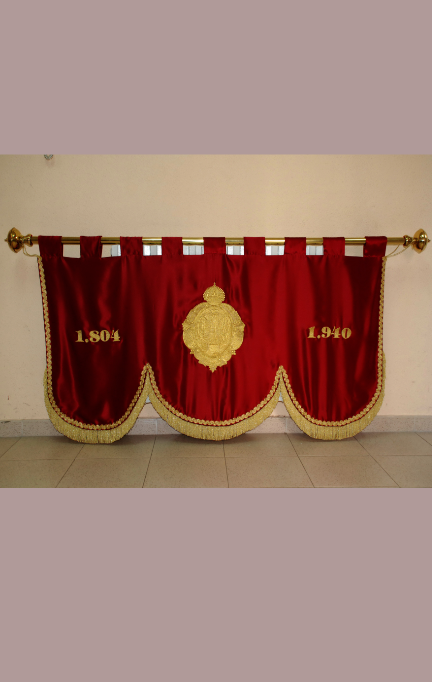 Consiste en un armazón dorado rematado en la parte superior por el escudo de la Cofradía. El cuerpo, confeccionado en terciopelo rojo, luce el emblema en el anverso y el nombre de la Cofradía en el reverso, todo ello bordado en oro y enmarcado por flecos dorados. Su función es la de representarnos en actos institucionales donde no concurre el Estandarte, entre otros en la procesión de san Antonio, la exaltación Infantil y los diversos concursos y exaltaciones de tambores. Se estreno en el año 2012.