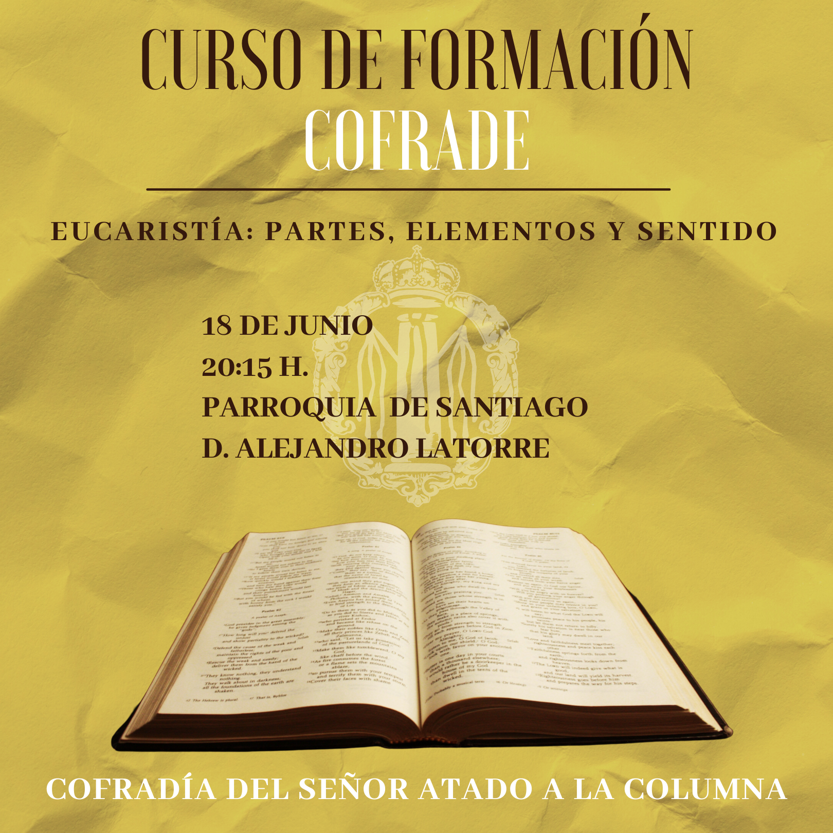 El sábado 18 de junio, en la parroquia de Santiago, a las 20:15 horas, tendrá lugar la segunda charla del curso de formación, la impartirá D. Alejandro Latorre, y tratará sobre la «Eucaristía: partes, elementos y sentido».