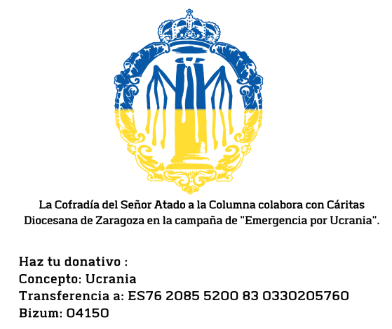 La Cofradía se suma a la campaña "Emergencia en Ucrania" que ha puesto en marcha Cáritas Diocesana de Zaragoza